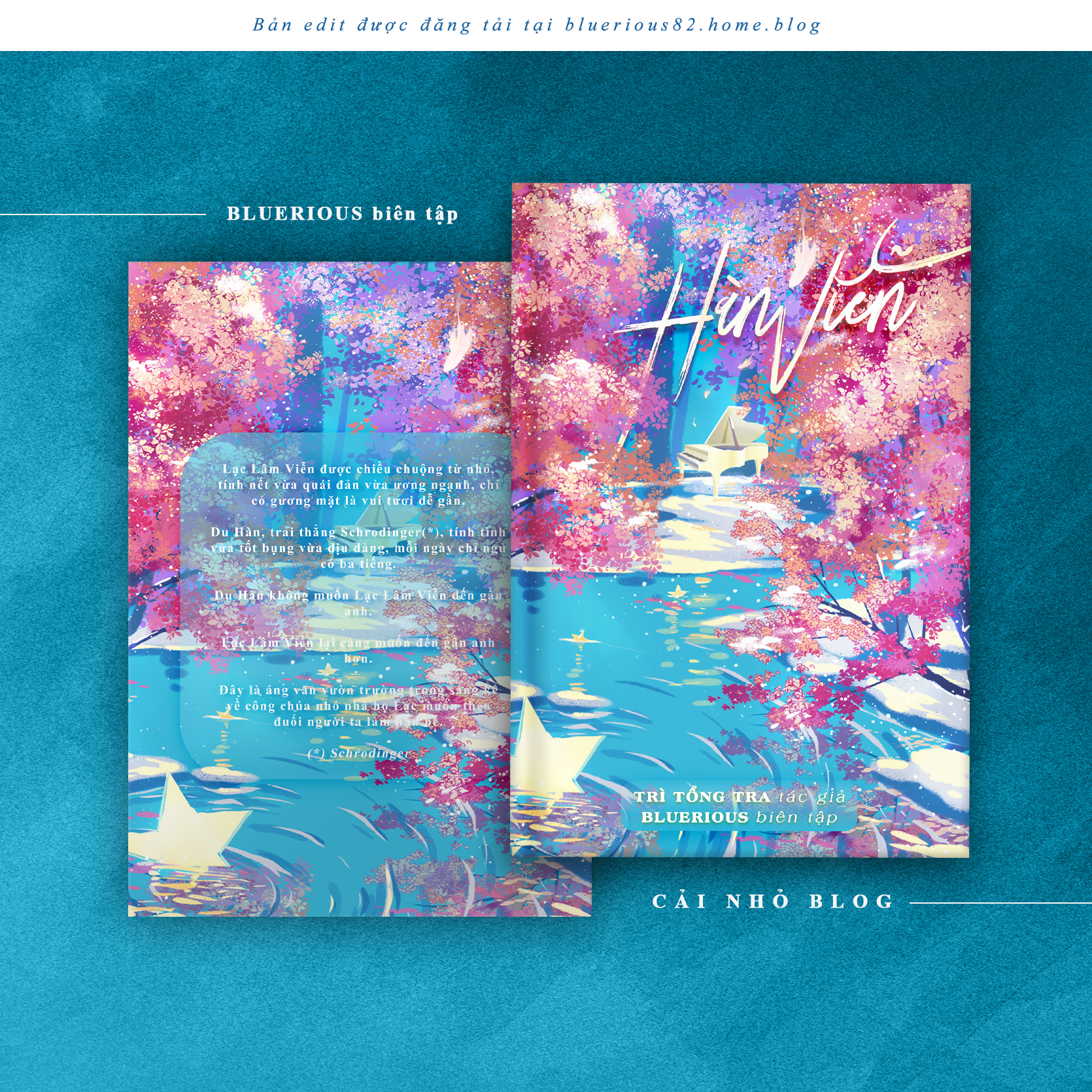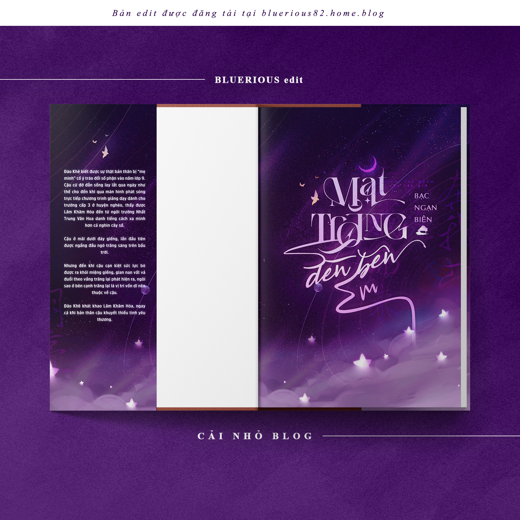 Cảm ơn bạn Nguyen Pham – chủ page Basic Need vì đã làm giúp mình những chiếc bìa xinh. Bạn ấy không chuyên nhận bìa đâu mà là nhà edit truyện cơ, mình cũng không nhớ rõ sao hồi đó có duyên được bạn ấy làm bìa cho nữa, cũng phải 4 bộ lận đó.