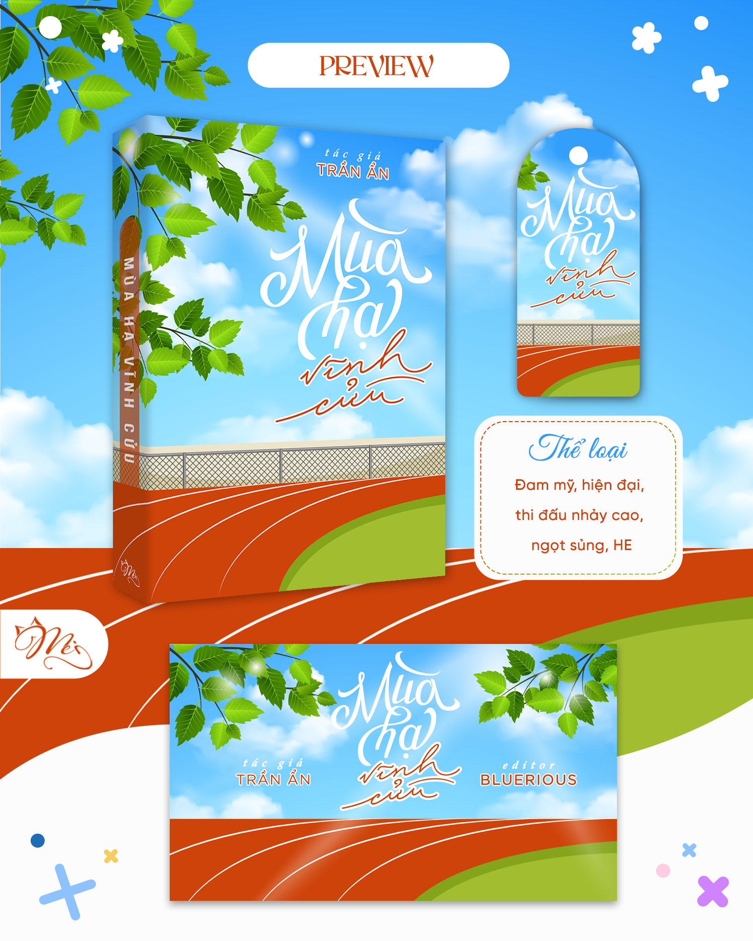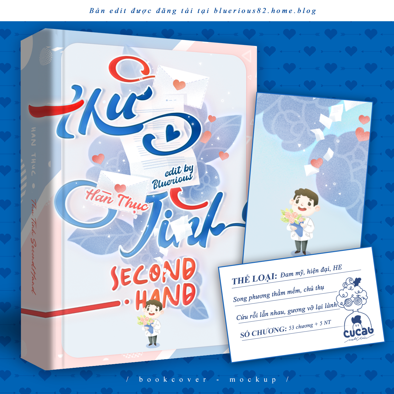 Cô Nu làm cho mình nhiều bìa nhất ấy, tuy là chờ rất lâu nhưng thành quả nhận được xứng đáng. Hơn nữa một điểm siêu ưng của nhà cô Nu mà mình chưa từng thấy ở đâu, đó là mỗi lần trả đơn cổ gửi n tấm như bên dưới nè, đủ các loại mockup, banner, bookmark, không thiếu cái nào luôn. Thậm chí mình còn xài không hết ╰ (* ´︶` *) ╯ Có một số truyện sẽ có hai bìa, do thiếu kinh nghiệm nên bìa đầu tiên mình không ghi artist (và bị phản ánh trên cfs), mà bạn Nu cũng không nhớ nguồn, cho nên mình có nhờ bạn ấy làm lại bìa khác.